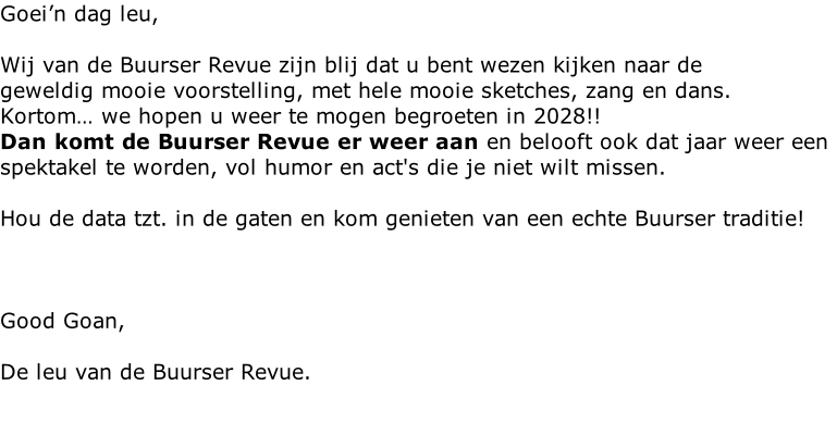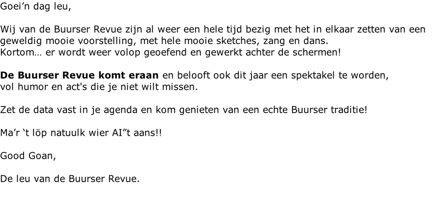 Dit zijn de data van de Buurser revue voorstellingen AI”t aans