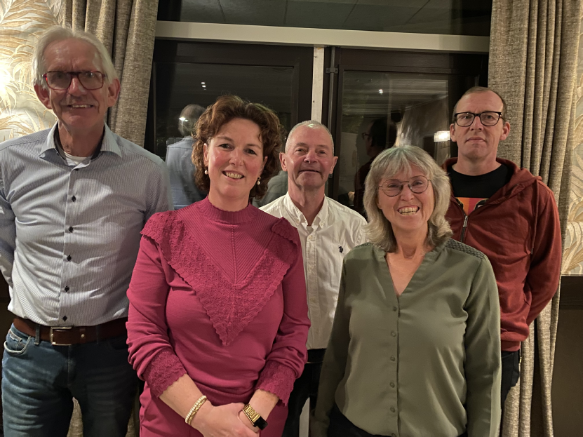 Vlnr. Hendrik ter Borg 20 jaar, Angelique Velthuis 40 jaar, Andre Resing 30 jaar, Truus Klein Rot 20 jaar, en